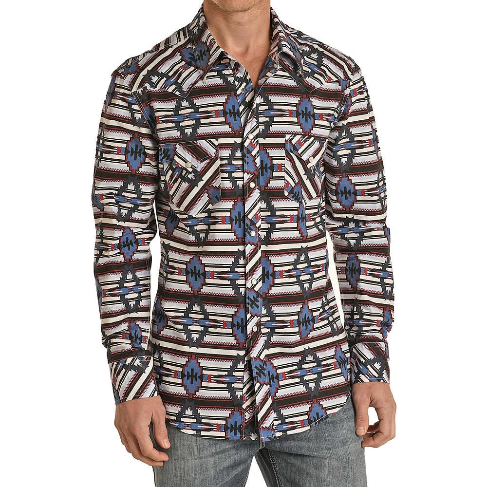 Men’s Rock N Roll Red Horizontal Aztec Snap Shirt