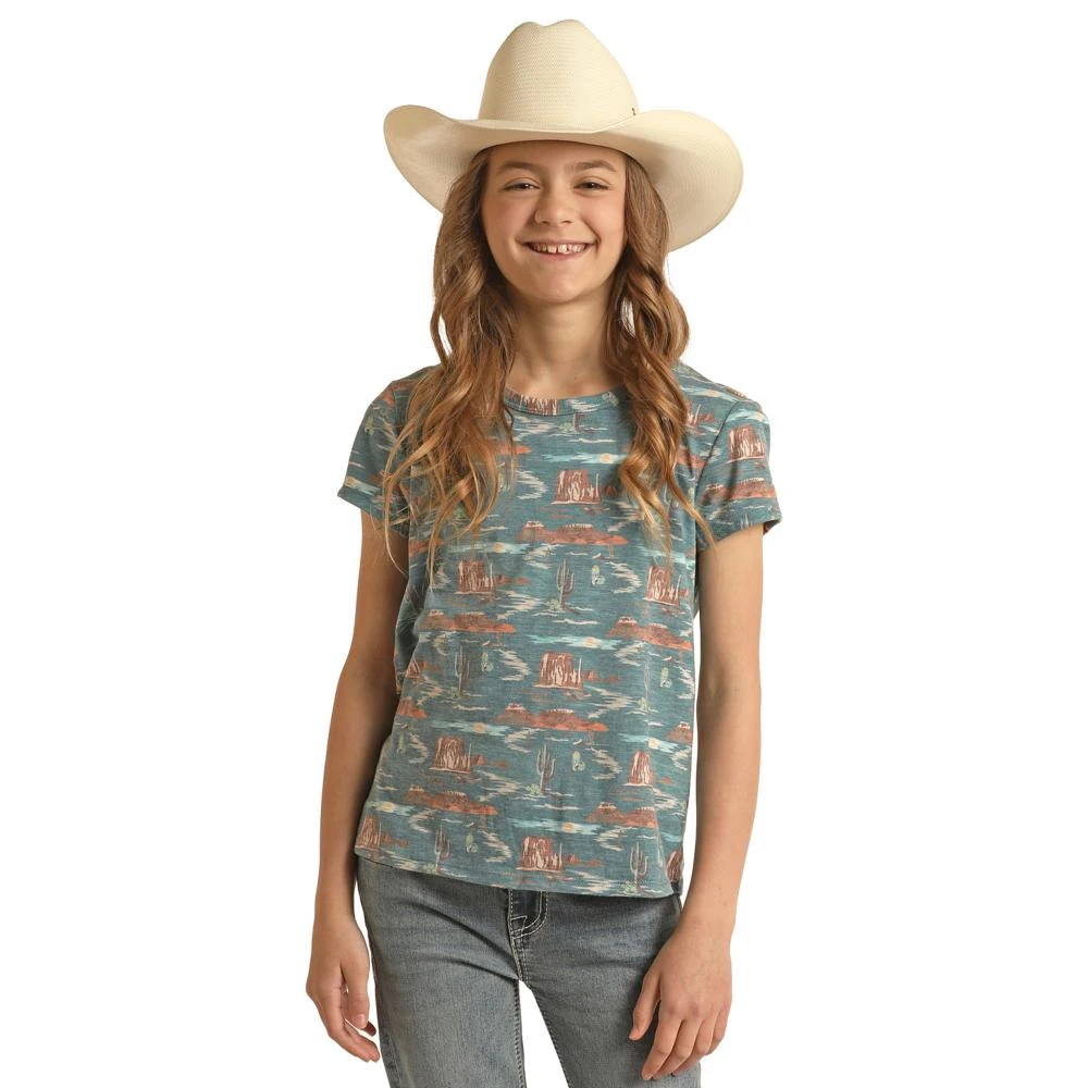 Teal scenery little girls printed tee by Rock and Roll Cowgirls.
