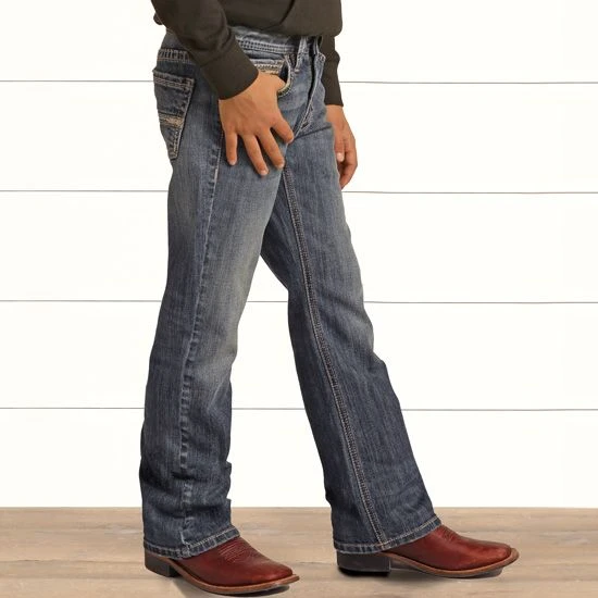 Keep him looking cowboy fresh in the Rock & Roll Denim Boys’ Reflex Horizon Bootcut Jeans. Featuring pocket detailing and the comfort that comes with Rock & Roll Denim. Grab his favorite Rock & Roll Denim shirt, and his favorite pair of boots to give him a cowboy look he is going to love!
