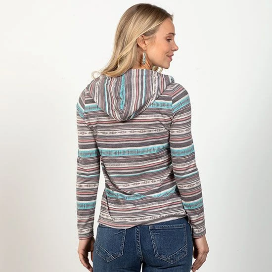 The Rock & Roll Cowgirl El Paso Serape Hoodie is a great lightweight top to add to any Rock & Roll Denim collection. This top is not only soft and stylish, it also allows for a comfortable form fitting option.