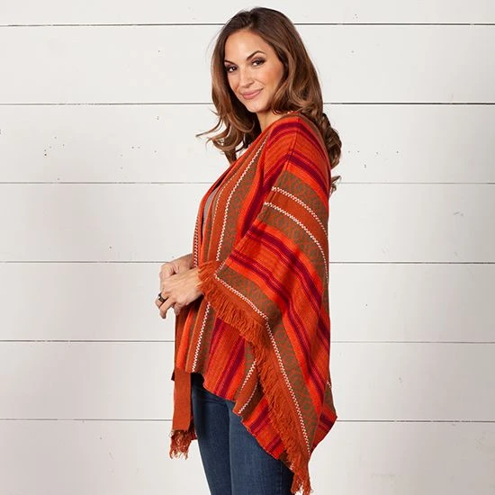 Rock a new poncho with some awesome fringe in the Rock & Roll Cowgirl Holiday Poncho!