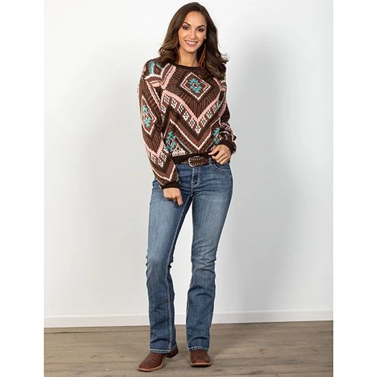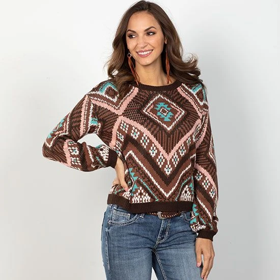 Stay cozy even on the coldest days with the Rock & Roll Cowgirl Intricate In Aztec Sweater.