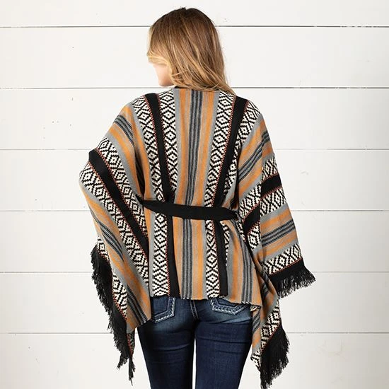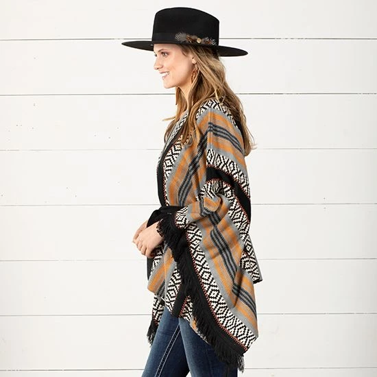 Love fringe and are looking for a sweet new poncho? The Rock & Roll Cowgirl On The Fringe Poncho Top is the pick for you.