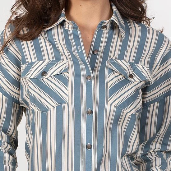 Need a top to pair with your favorite flare jeans? Look no further. The Rock & Roll Cowgirl Sassy Stripes Top ups any cowgirls fashion game!