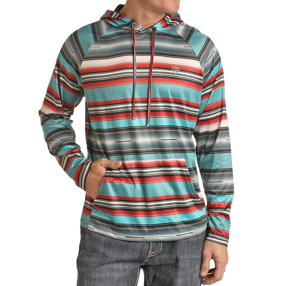 This Rock & Roll Denim Turquoise Lightweight Serape Hoodie is a great hoodie to layer up or on those breezy summer nights.