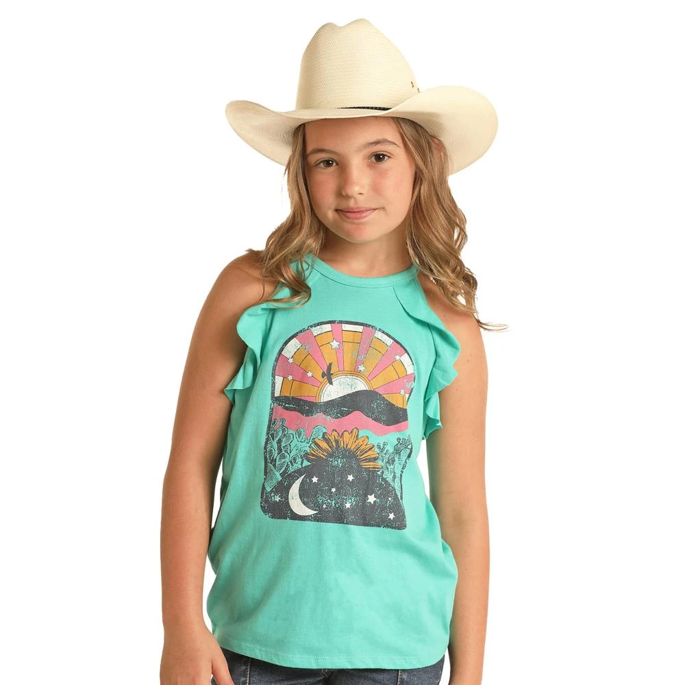 Rock & Roll DenimGirls Graphic Tank With Ruffles