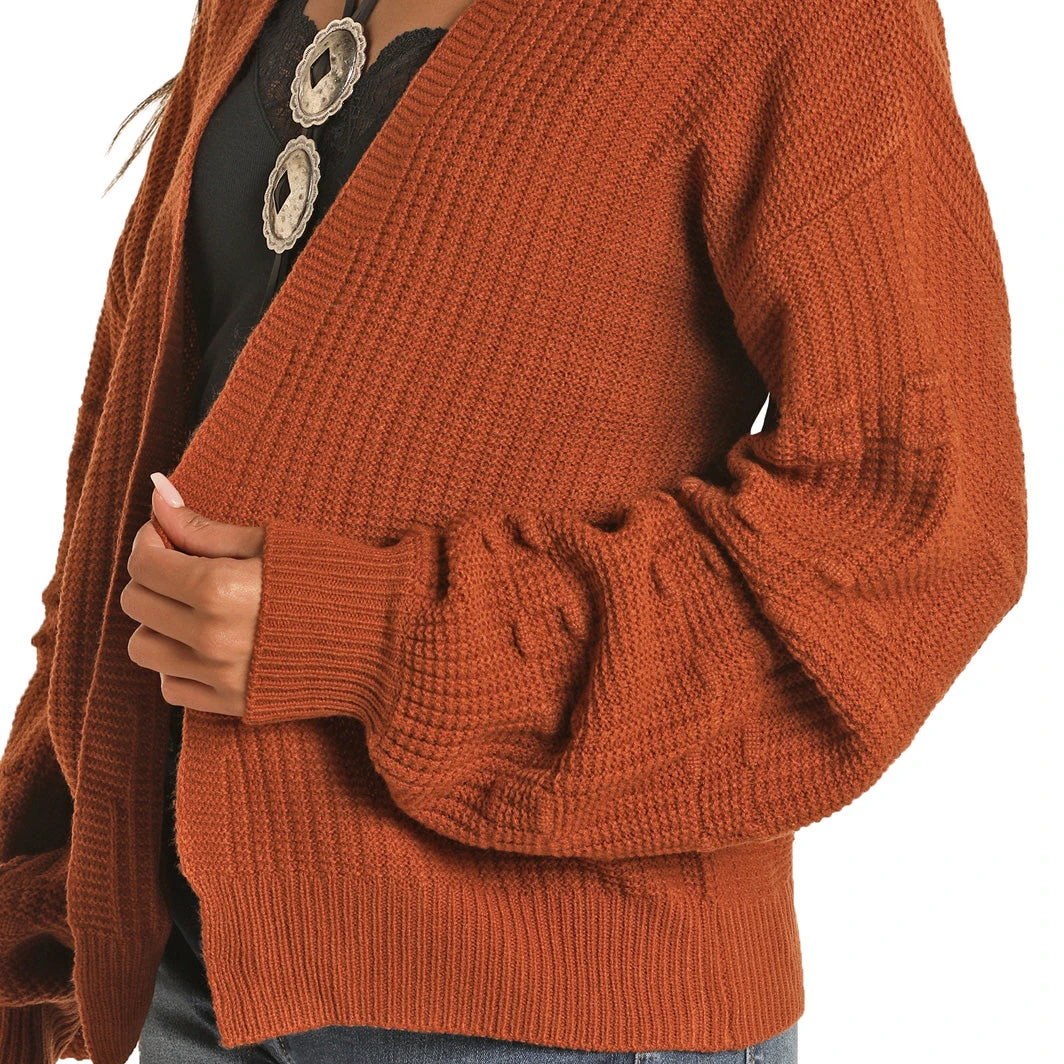 Rock N Roll Cowgirl is gearing up for Fall weather with this rust cardigan.